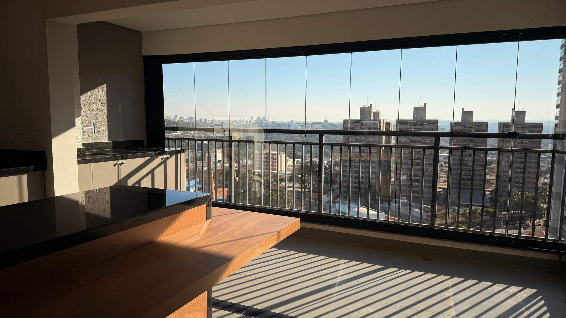 Ambientes amplos e sofisticados: sacada nivelada e estendida, criando um espaço único para receber amigos e família.