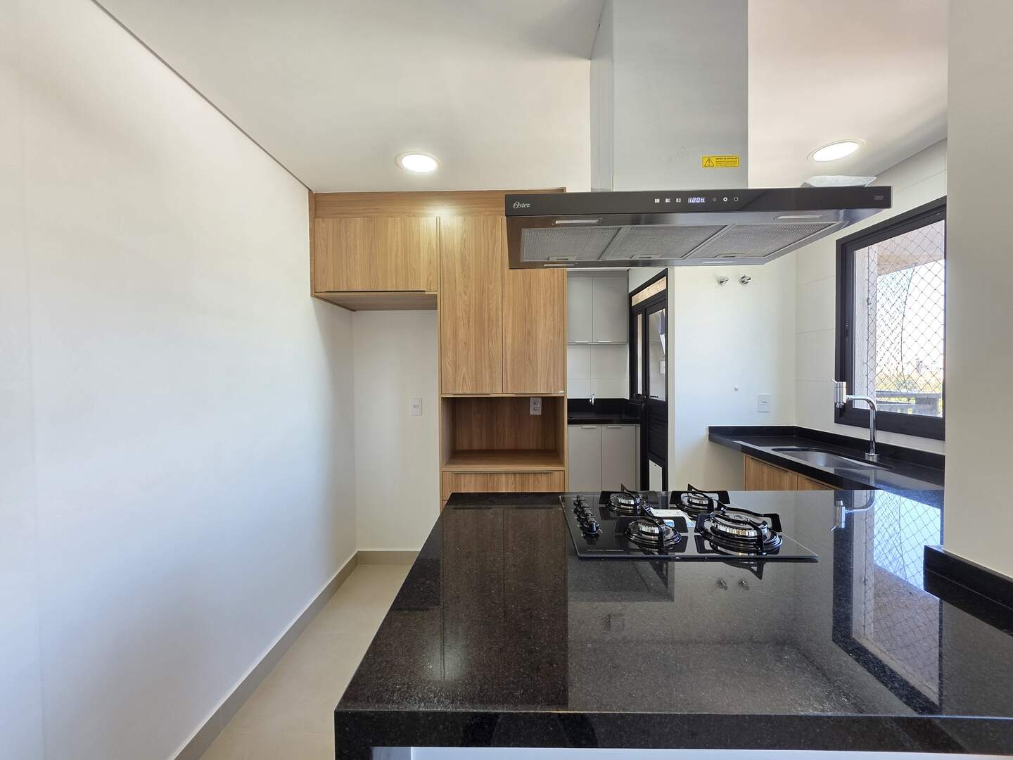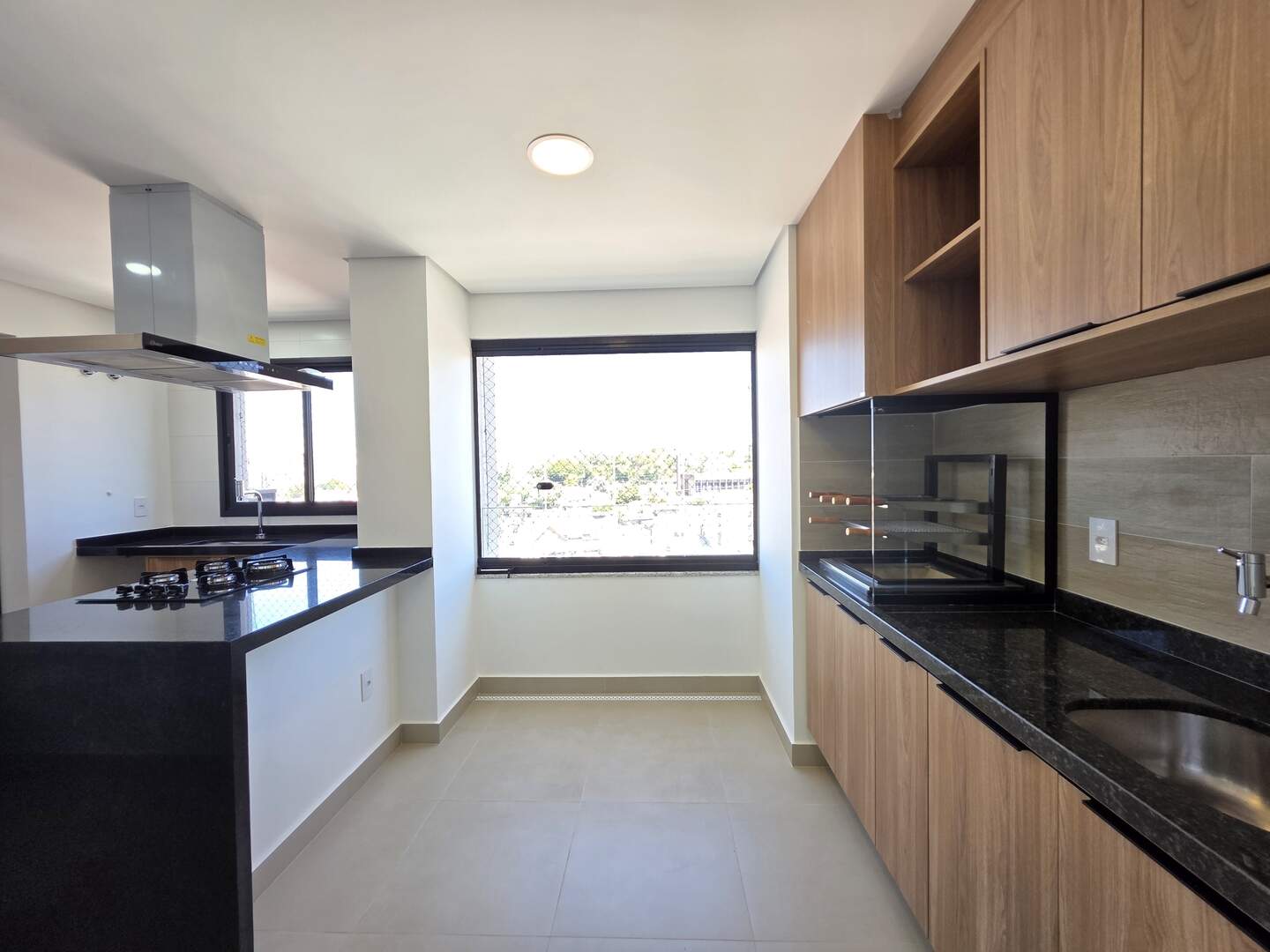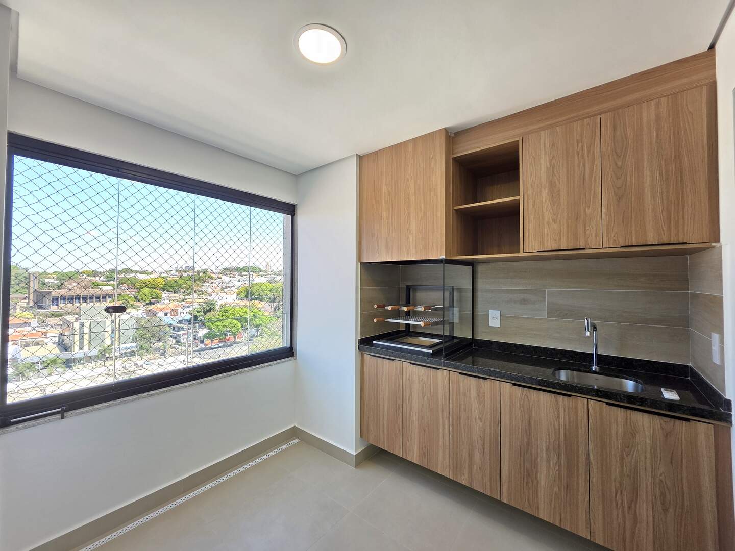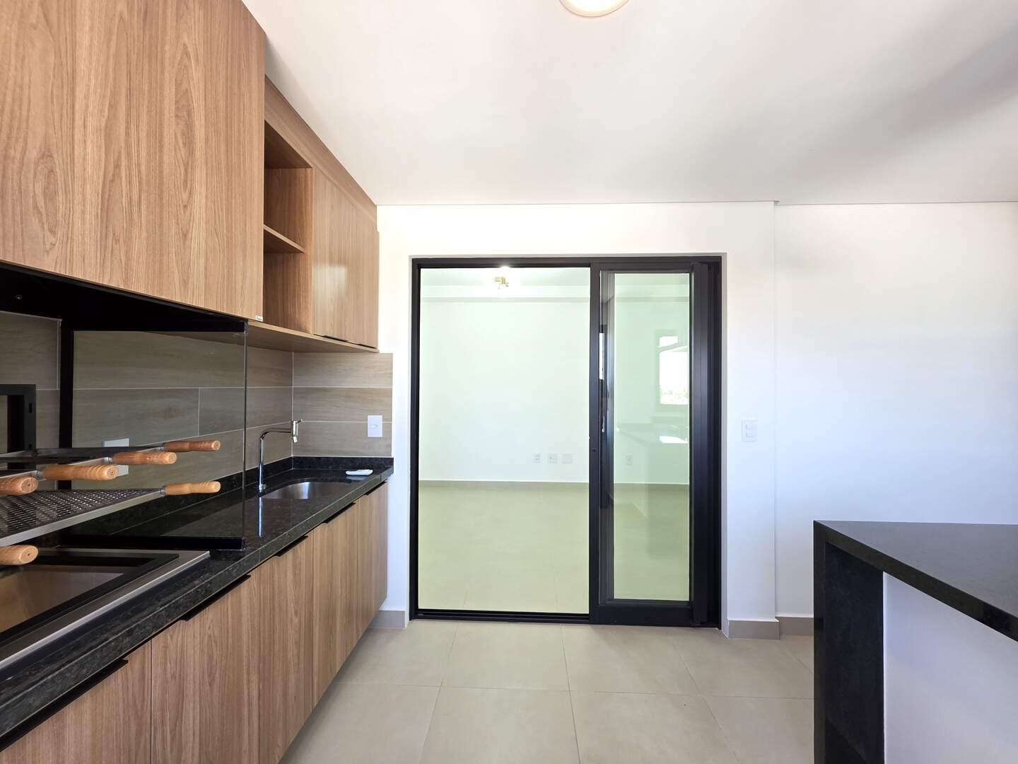 Varanda gourmet nivelada com a sala, com fechamento em vidro blindex