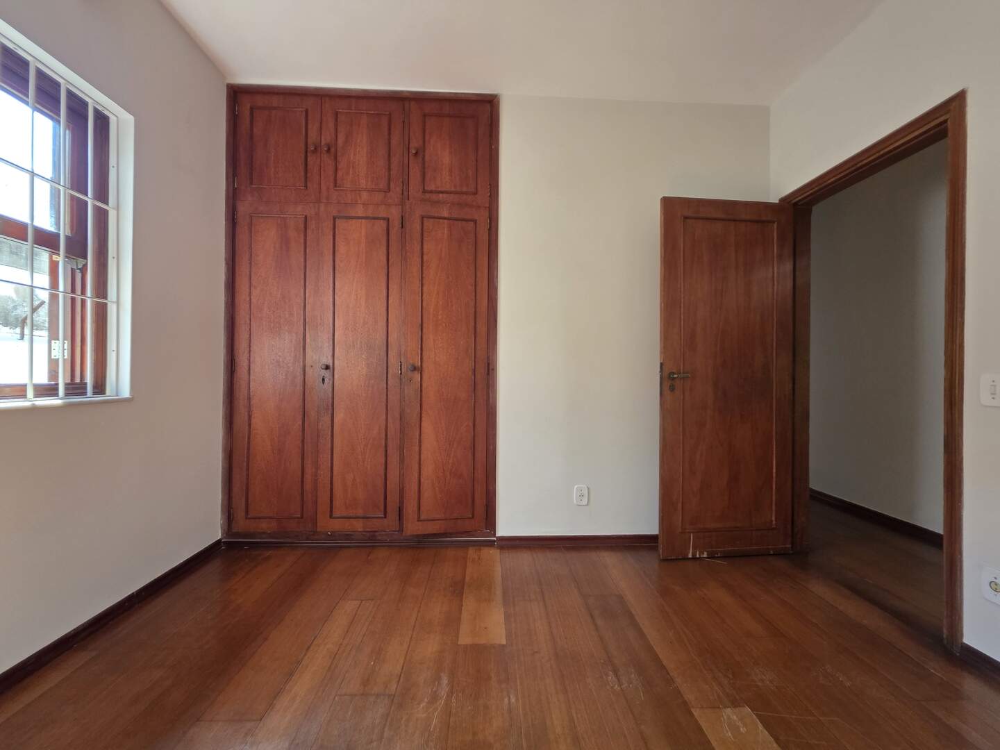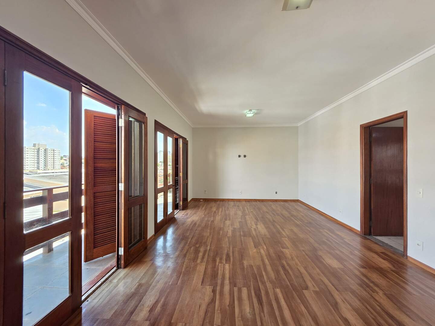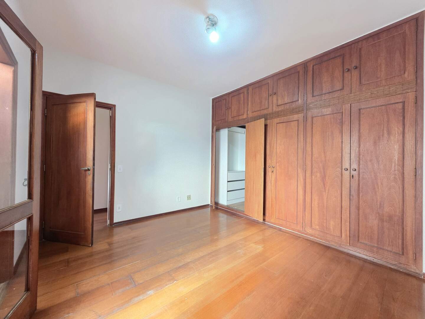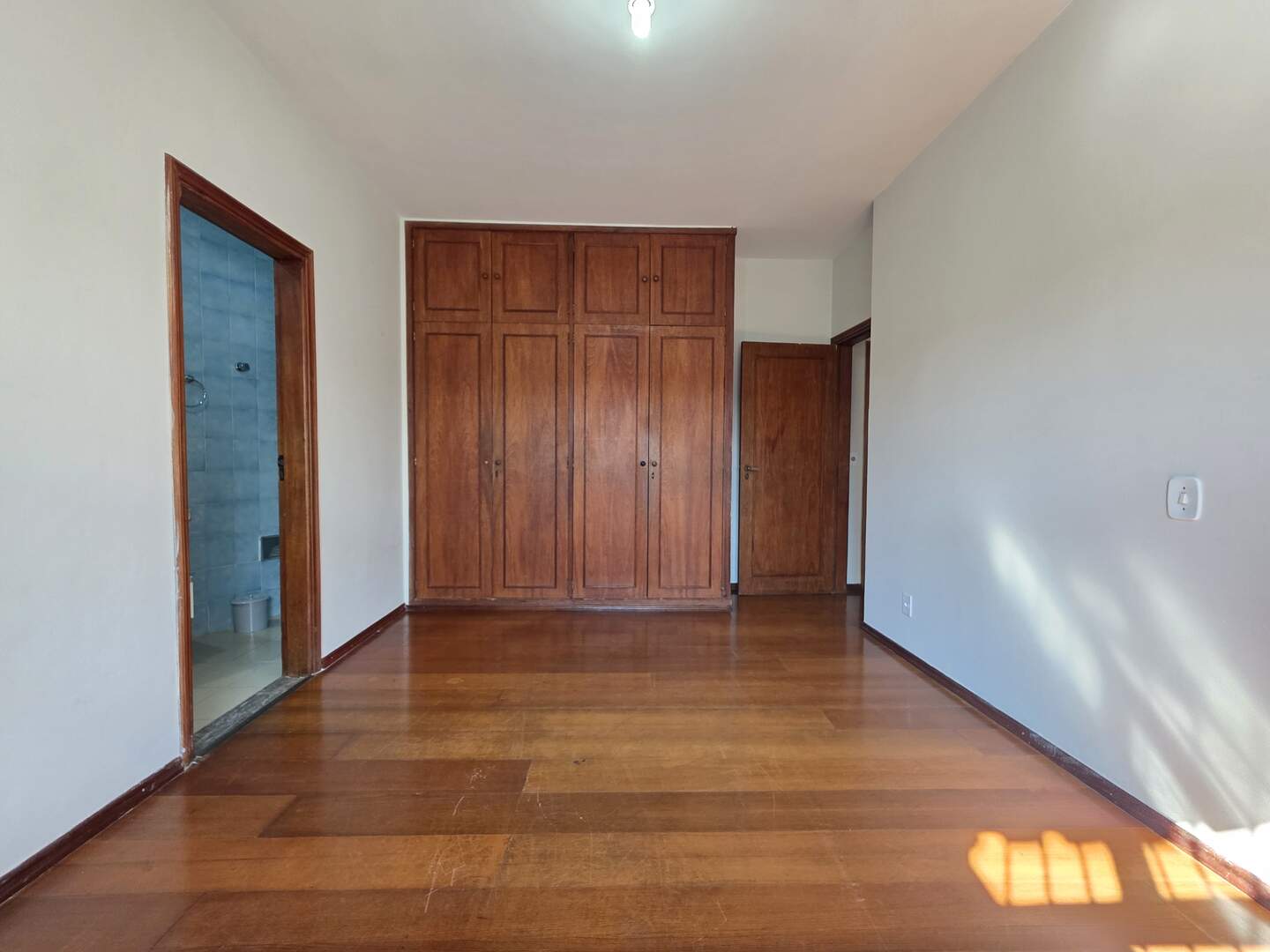 Piso de madeira nobre nas salas de estar, corredor e dormitórios