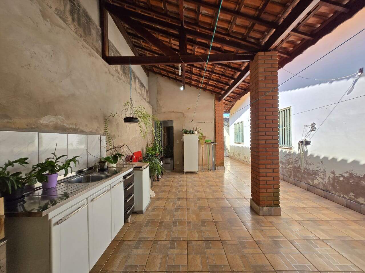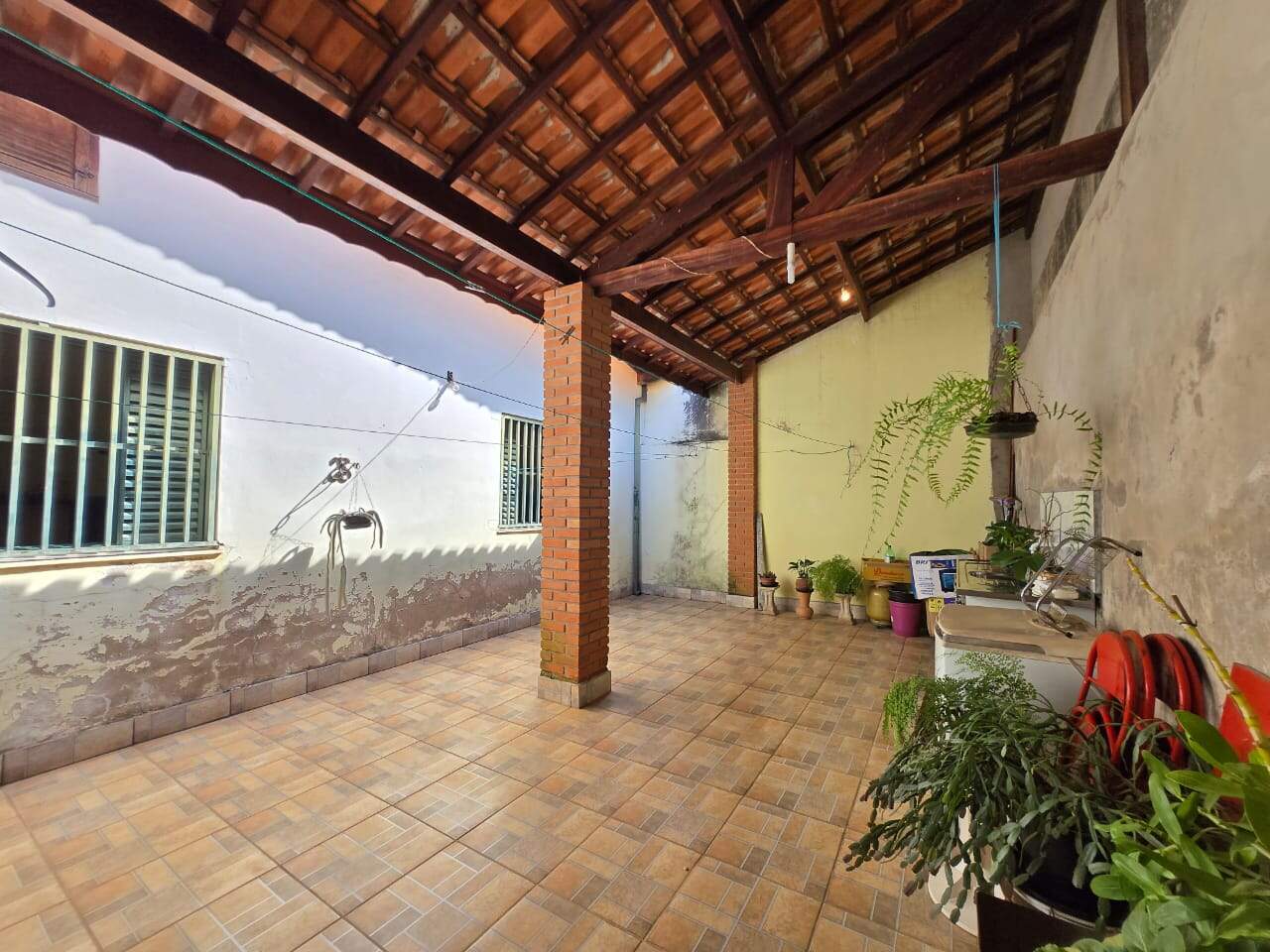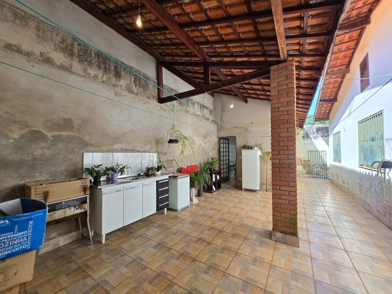 Espaço nos fundos com área de churrasco, banheiro e cobertura ideal para momentos de lazer
