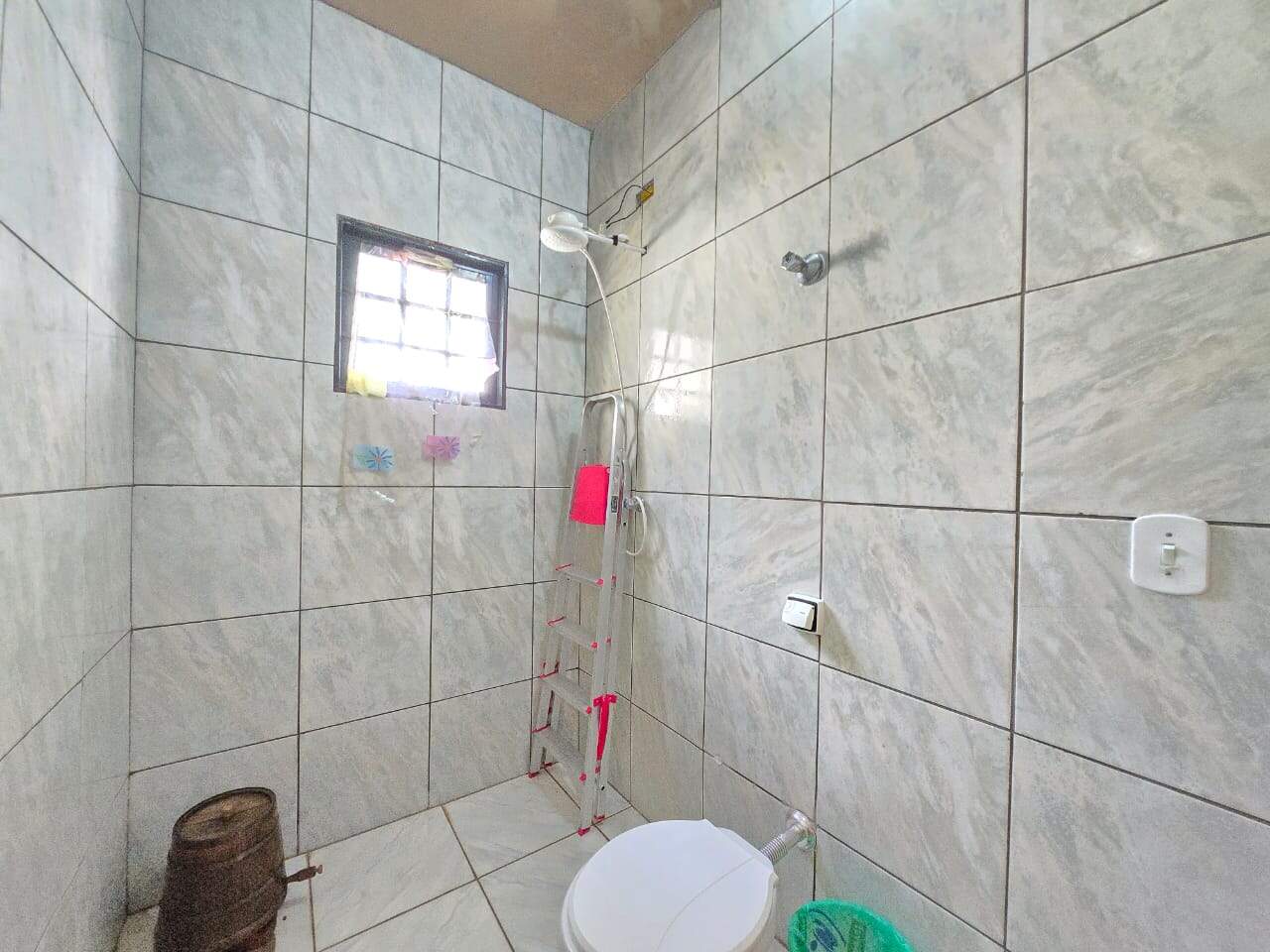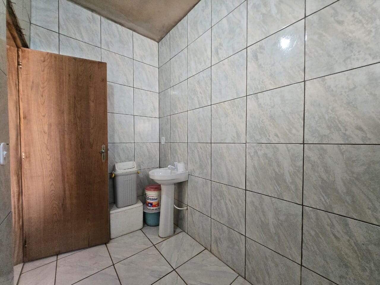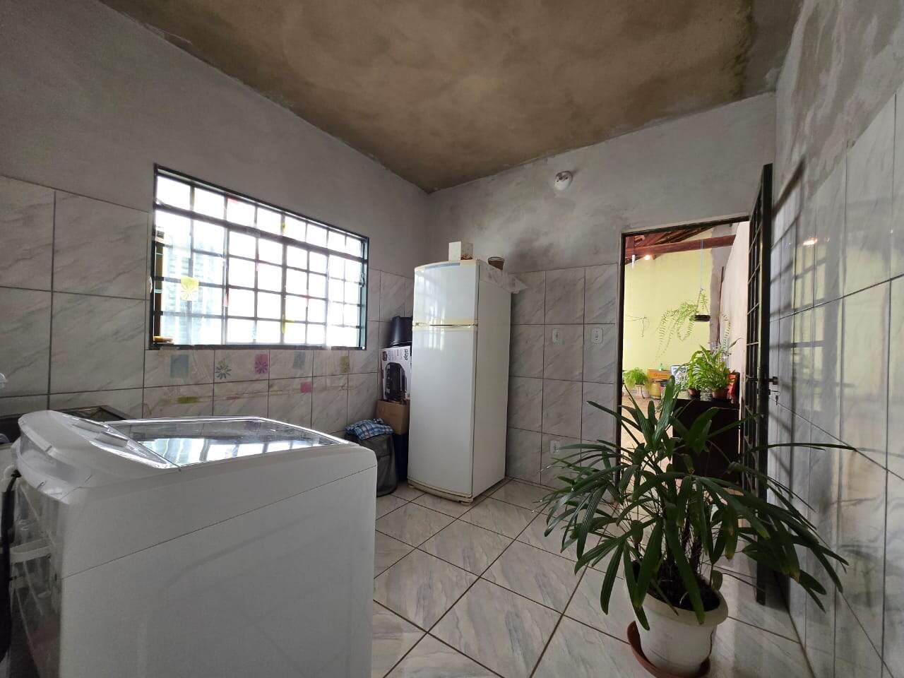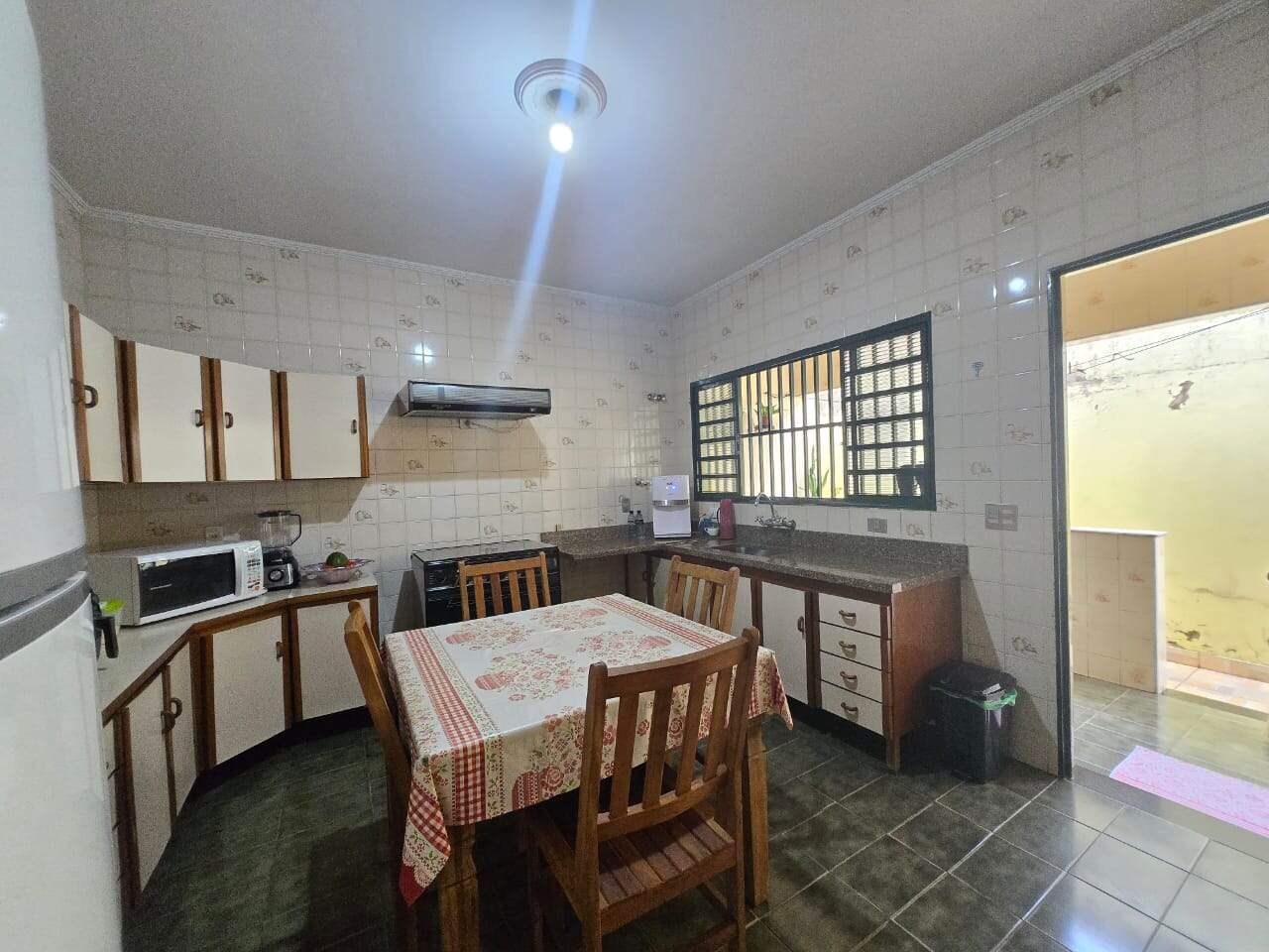 Espaço nos fundos com área de churrasco, banheiro e cobertura ideal para momentos de lazer