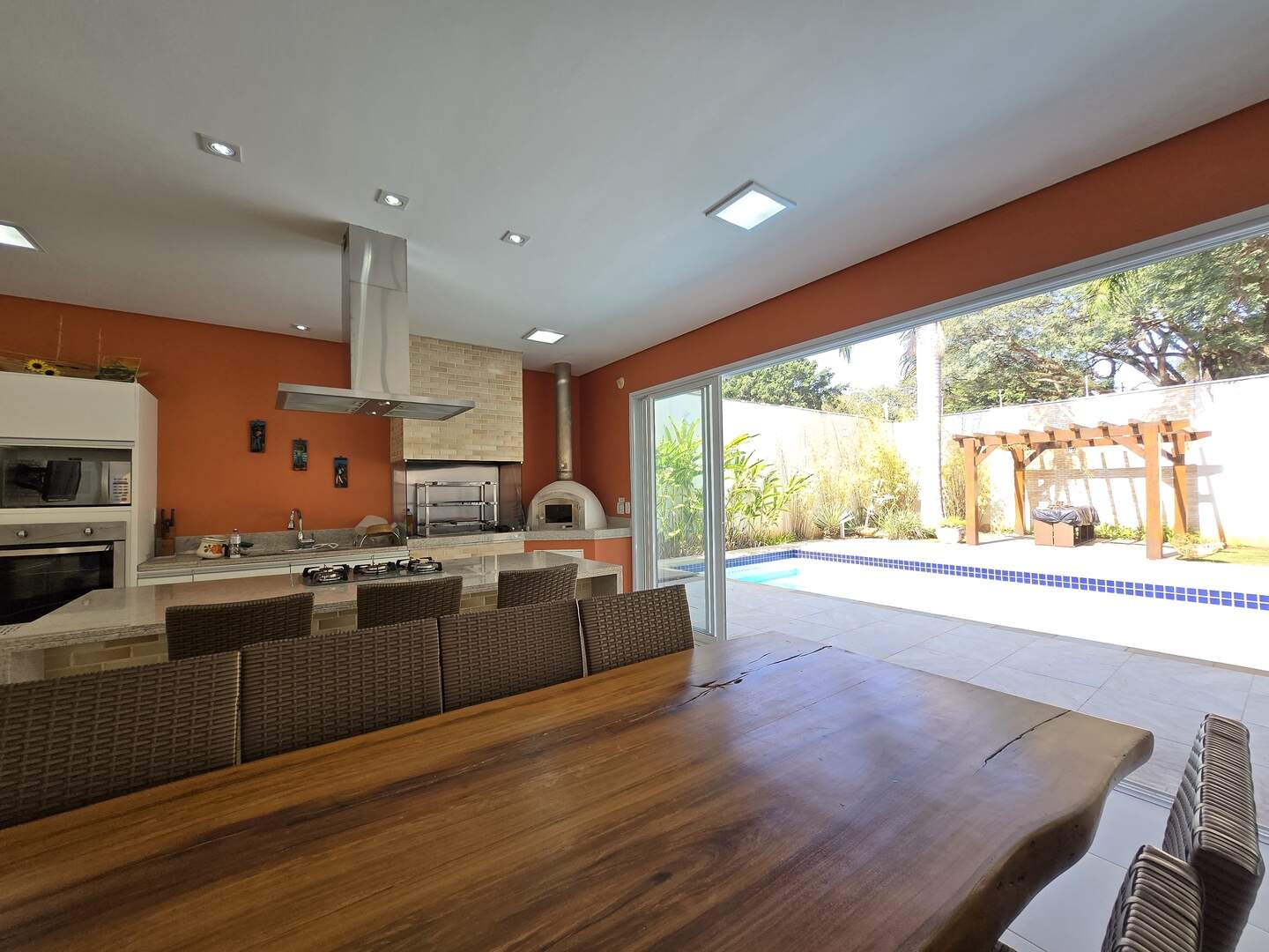 O espaço gourmet é o verdadeiro destaque desta residência. Equipado com churrasqueira, piscina e um quintal espaçoso, é o cenário ideal para momentos inesquecíveis com amigos e familiares.